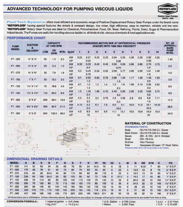 ROTOFLUID-025,050,075,100,200,250,300 FT SERIES, GEAR PUMPS