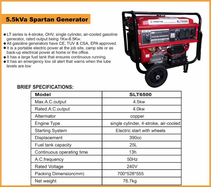 SPARTAN 6.5KVA GASOLINE GENERATOR