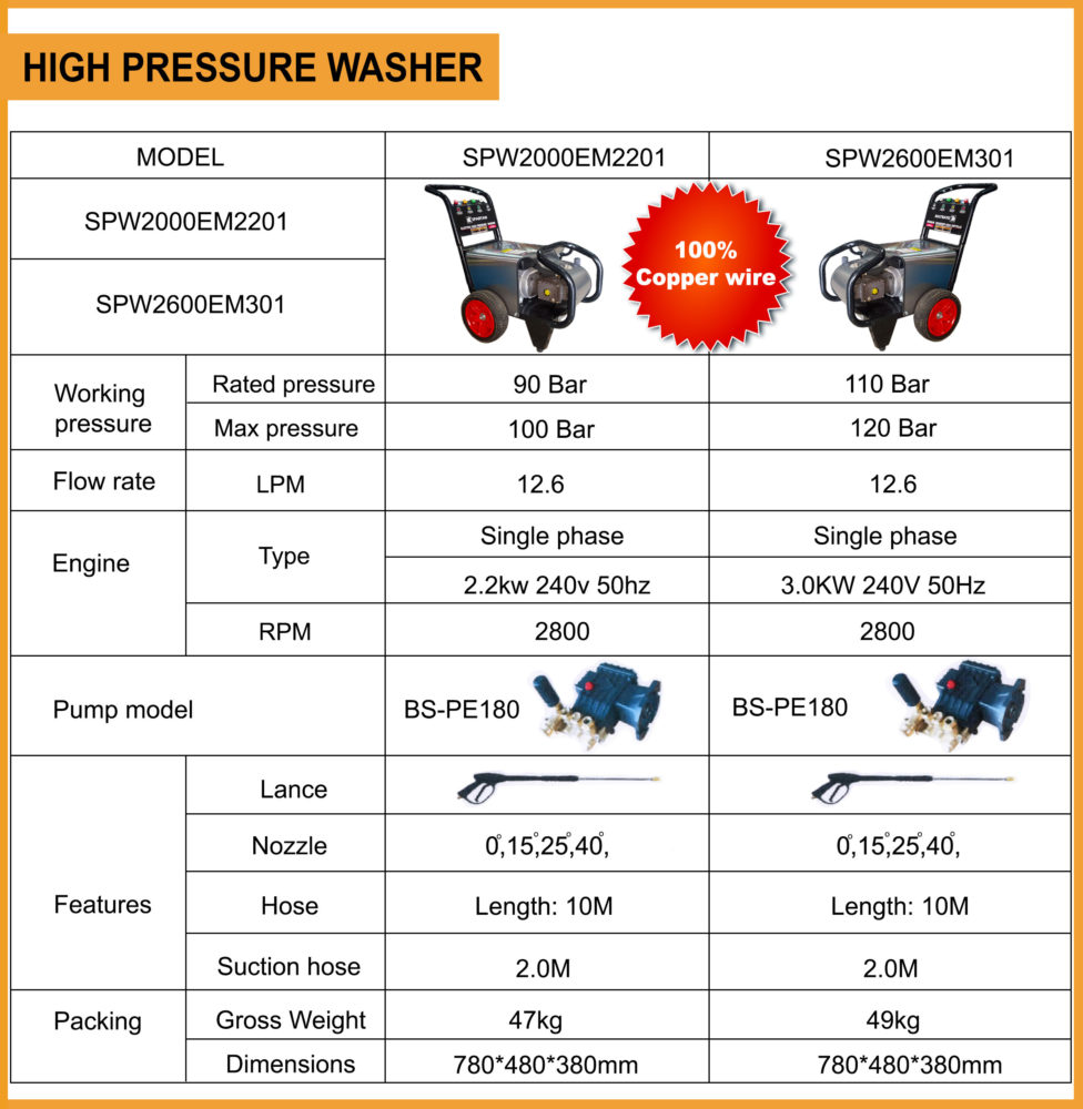 SPARTAN -SPW2000EM2201- PRESSURE WASHER