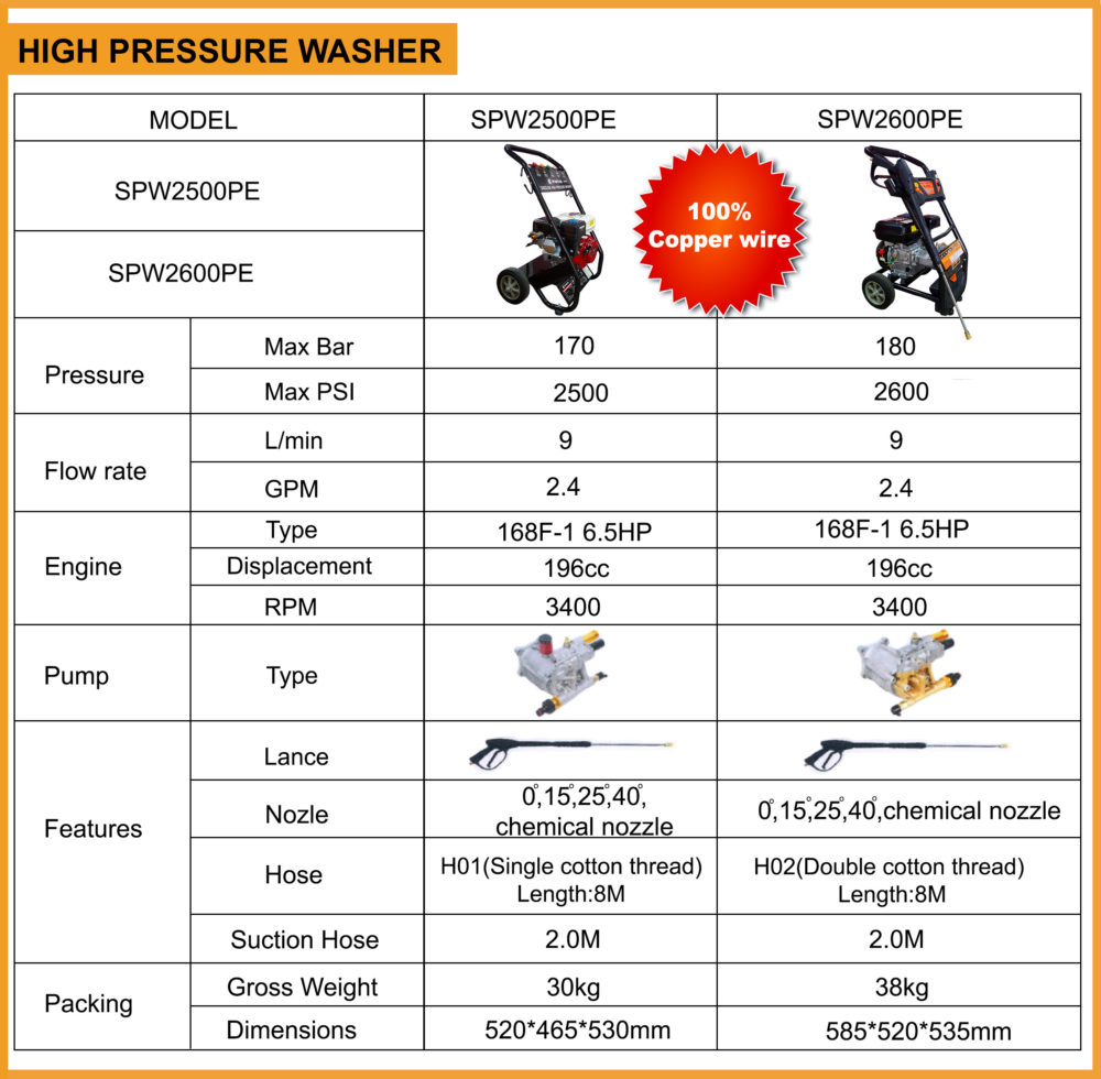 SPARTAN-SPW2600PE – PRESSURE WASHER